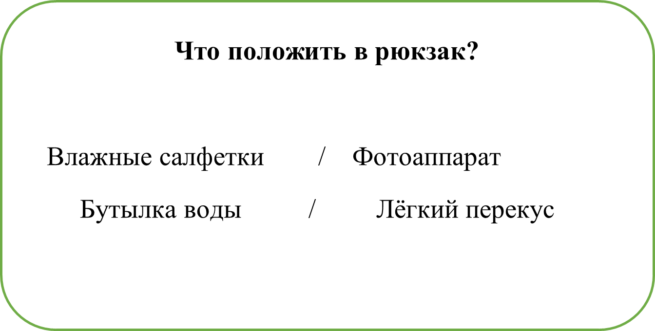 3. Советы: что обсудить до похода, как одеться, где перекусить.