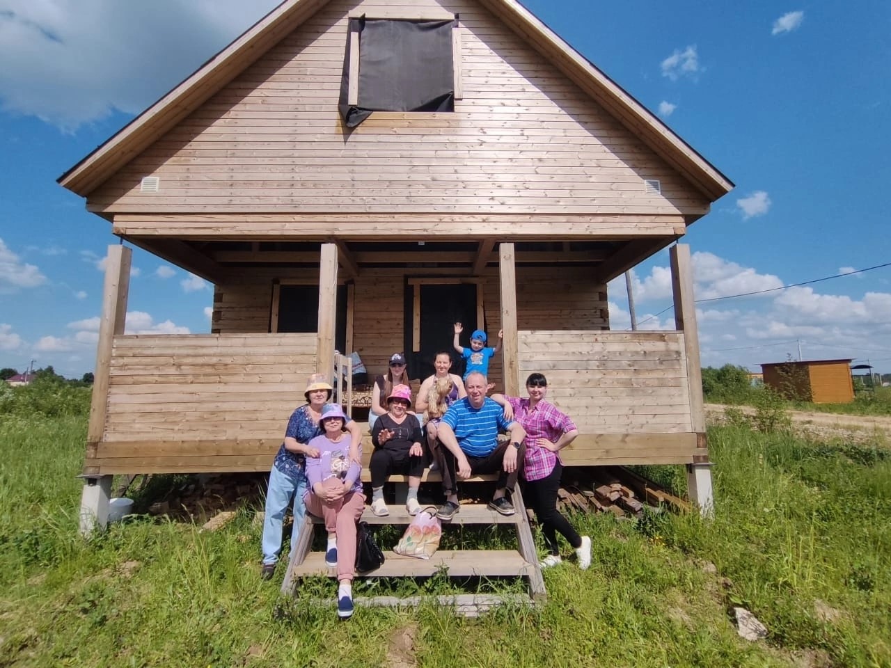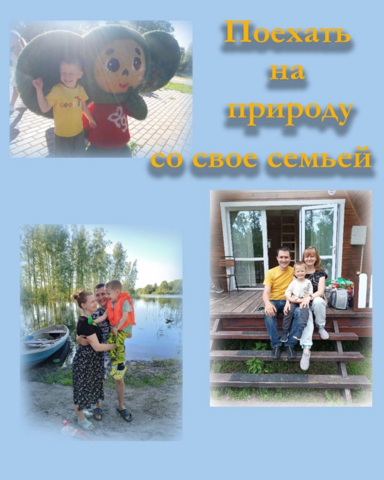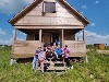 Летом все выходные мы проводим на даче. Ездим всей семьей. На фото мои папа, мама, сестра, собака, бабушки, прабабушка, тетя, а снимает нас всех - дядя. На даче я помогаю всем... с папой кладу полы в доме, с дядей развожу костер, с прабабушкой сажаю горох и цветы, маме копаю грядки и наливаю из шланга воду, с сестрой купаюсь... и ещё делаю кучу всяких дел ))) |
