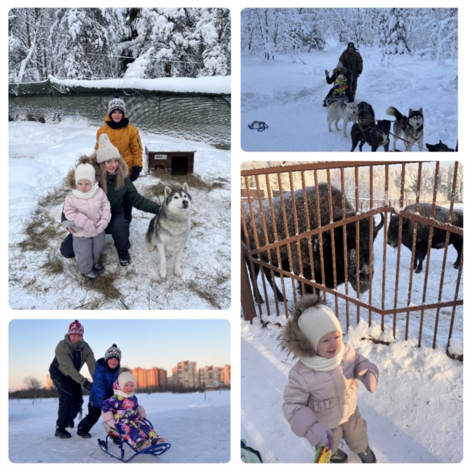Зимой мы всей семьей ездили в хаски центр и там катались на собачих упряжках. Посетили парк семейного отдыха «Зубровник». Я впервые увидела огромных зубров. А еще мы очень любим ходить на горку и кататься вниз с горы на санках.