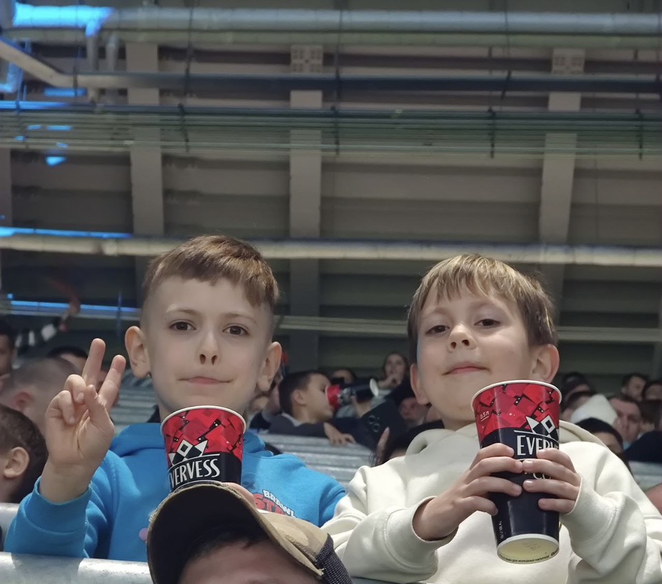А еще я очень люблю футбол, и здесь мы с моим другом с команды на стадионе Зенит, болеем за нашу любимую команду. |