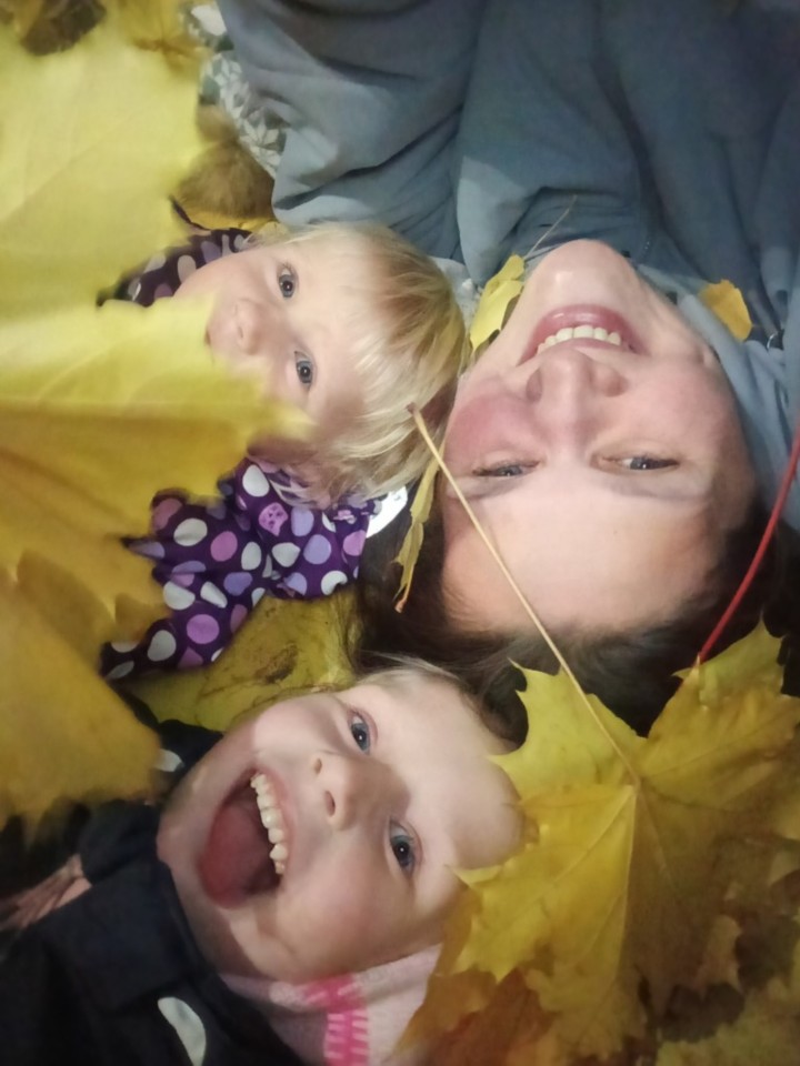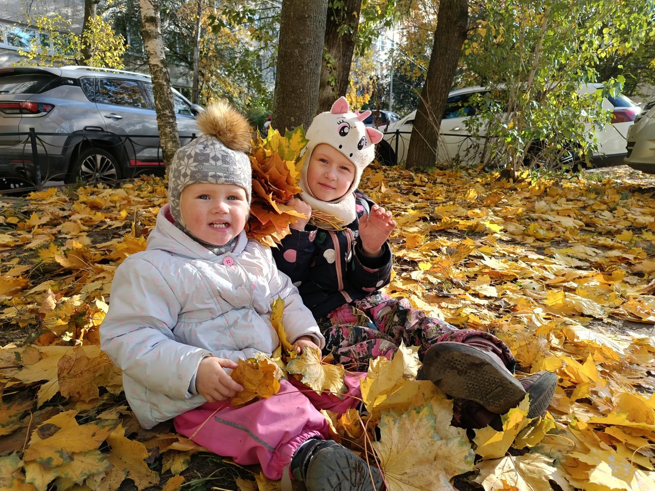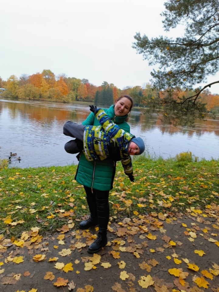 Когда гуляем, мы любим баловаться и играть. В эти выходные бросались листьями, плели венки из них, бегали и прятались за деревьями. А когда я устал, и сказал, что идти не хочу, мама сказала: «ну тогда полетели» ))) Летать мне понравилось больше, чем ходить )))