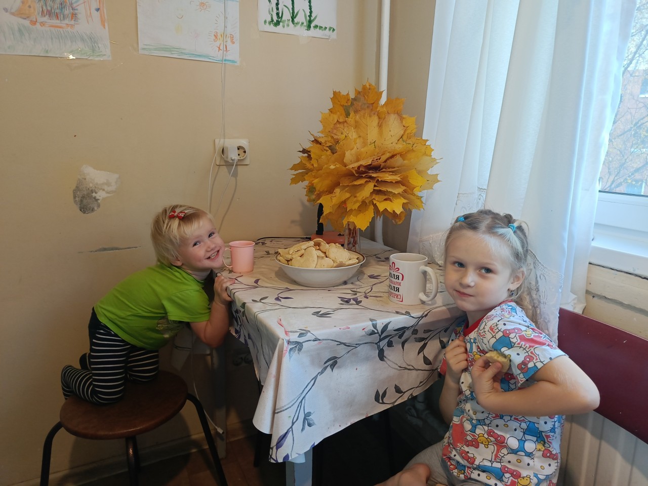 Всем привет! Нас зовут Алиса и Милана. Мы сестры Беляковы. Вся неделя у нас проходит в интенсивном режиме: садик, кружки, тренировки, работа у родителей... Поэтому выходные мы стараемся проводить всей семьей. И поэтому у нас есть свои традиции. Первая-это проводить выходные с пользой. Мы часто посещаем музеи, театры, разные исторические места. Так в этот раз мы ходили в "Театр на Неве" смотрели спектакль "Сказка о мертвой царевне и семи богатырях" Спектакль нам оочень понравился! И даже мама высоко оценила игру актеров! Еще одна наша традиция-это готовить в выходной день что-то особенное. В этот раз мы все вместе пекли пироги: каждому свои-Милане сосиски в тесте, маме ватрушку с брусникой, мне с яблоками, а для папы карельские калитки с картошкой! На пироги мы позвали в гости бабушку Олю и вся семья собралась вместе за обеденным столом. Было очень здорово. А после обеда, когда у всех было свободное время, бабушка Оля научила нас шить! И даже Милане, которой всего 4 года доверили в руки настоящую иголку с ниткой! Оказалось это совсем не сложно. И мы под руководством бабушки сшили новые наряды для наших игрушек. Милана-платье для куклы, а я рубашку для своего олененка. И пусть они получились немного кривоваты, зато сделаны своими руками! Вот так весело и с пользой прошел один из наших выходных дней! Пока!!!) |
