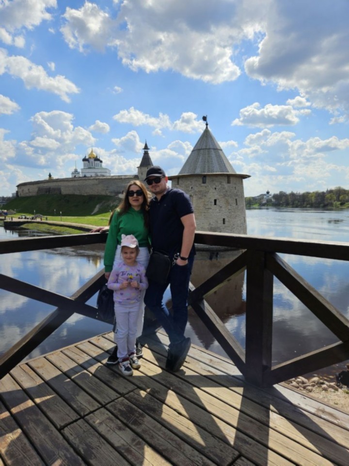 Семейные выходные прошли в историческом городе Пскове. С родителями были на экскурсии в Псковском Кремле, который называется Кром. Узнали об истории Кремля и сфотографировались на фоне Псковской башни Псковского Кремля. |
