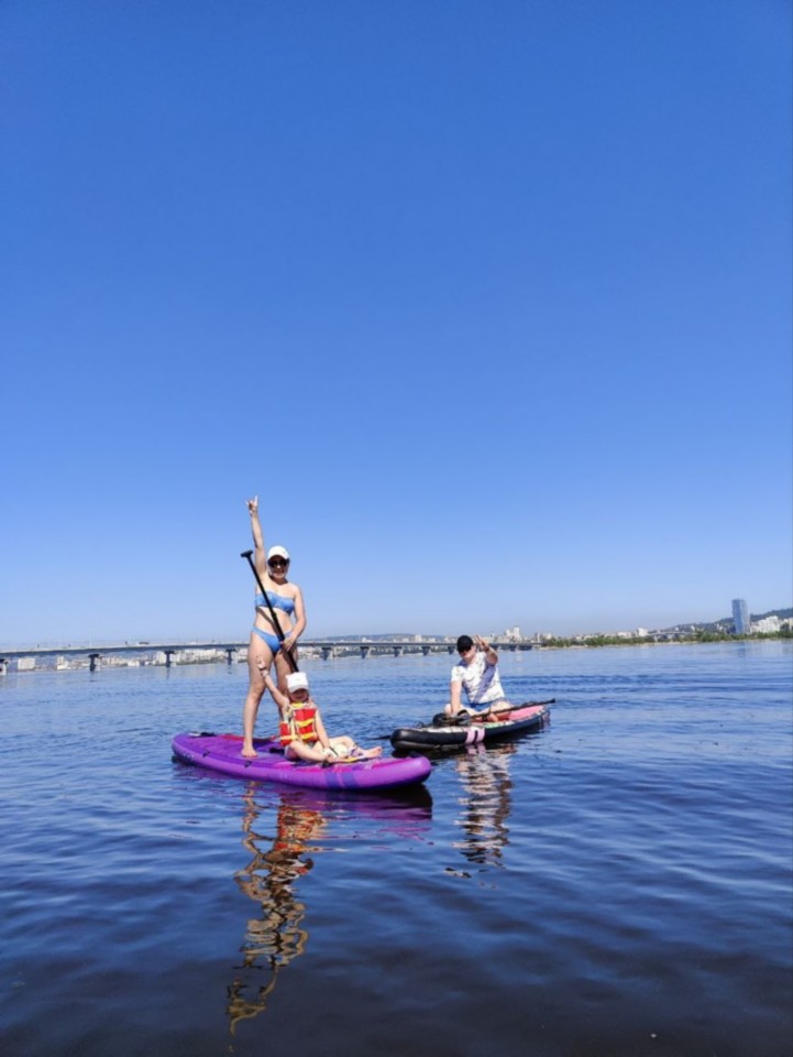 В этом году мы с родителями попробовали водный вид прогулки "Сапбординг". Прогулка на сапе была на одной из крупнейших рек на Земле, на Волге в городе Саратове на фоне саратовского моста, который объединяет два города, Саратов и Энгельс. |