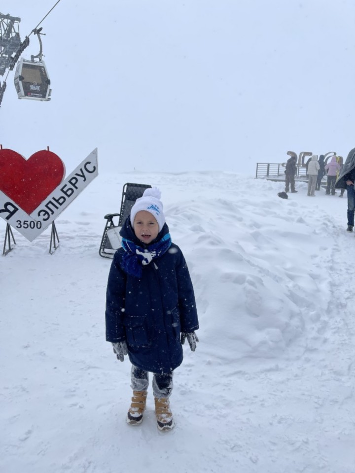 Моя семья любит путешествовать. И здесь мы на Эльбрусе, поднимались на фуникулере на высоту 3500м |