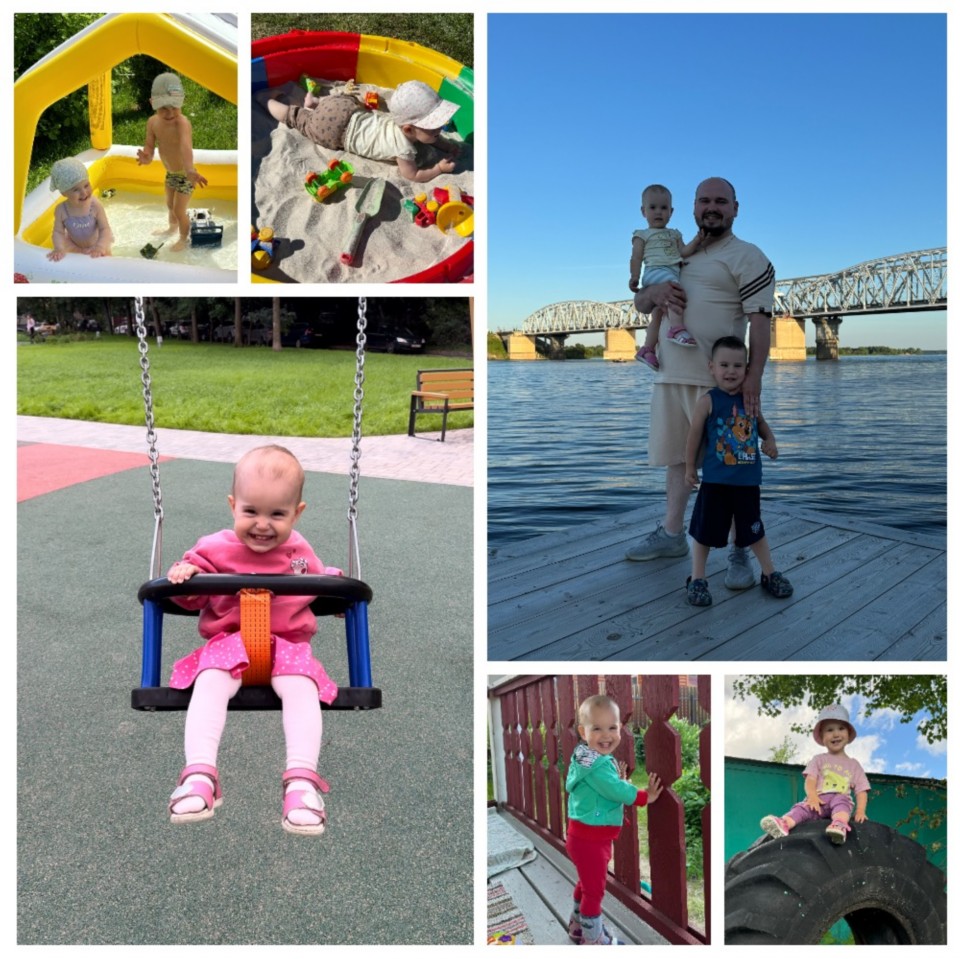 Летом мы много времени проводим на свежем воздухе и у воды. В городе исследуем новые детские площадки, а на даче мы купаемся в бассейне. Еще этим летом мы побывали на Волге и ездили в Выборг.