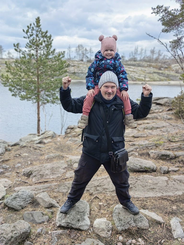 Наша семья очень любит путешествия. А этой весной мы ездили в мини- путешествие вокруг Ладожского озера. Посетили большие города Выборг, Сортавала и Петрозаводск. Когда мы были в городе Сортавала, то нам всем захотелось прокатиться на катере. А во время поездки нас высадили на острове Хонкасало. Мы смогли взобраться на самое высокое место на острове и папа носил меня на плечах, потому что он мой богатырь!