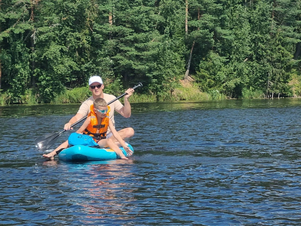 Этим летом мы с папой впервые катались на сапах, мне очень понравилось, я даже сам управлял сапом и был в восторге.