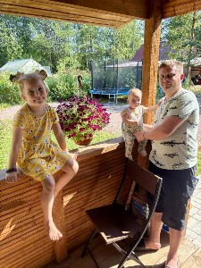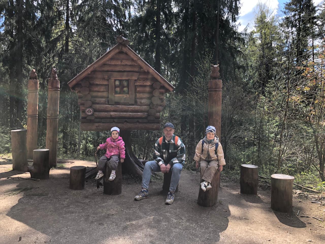 Мы с папой очень любим путешествовать! На этой фотографии мы с папой и братом в парке Токсовского Зубровника у избушки Бабы Яги. Мы ездили смотреть зубробизонов. Их в природе осталось мало и мы решили, что непременно должны их увидеть! Это огромные мохнатые животные похожие на корову. Мы кормили их морковкой и яблоками. А потом гуляли в парке и увидели дом. Мы не испугались и хотели познакомиться, но Бабушки Яги дома не было. В этом году мы были в нескольких музеях, зоопарках и просто много гуляли за городом! Я люблю проводить время с папой!