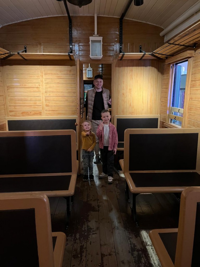 Мы с папой любим узнавать вместе что-нибудь новое! На этой фотографии мы с папой и сестрой в "Музее железных дорог" в старинном деревянном вагоне! Нам очень понравился этот музей! Там много настоящих огромных поездов и вагонов разного времени, можно все потрогать, везде зайти! А ещё папа работает в компании РЖД и рассказал нам обо всех экспонатах сам, без экскурсовода! В этом году мы с мамой и папой побывали в нескольких музеях: Кунсткамере и Зоологическом музее, музее Блокады Ленинграда (под стеллой "Героическим Защитникам Ленинграда" на Московском проспекте), в Петропавловской крепости, в музее деревянного зодчества и быта, музее Байкала, в нескольких зоопарках и зоосадах и Океанариуме. У нас с папой в планах ещё много путешествий!