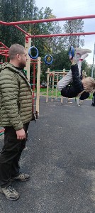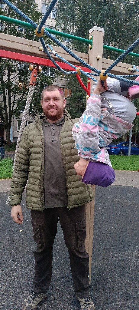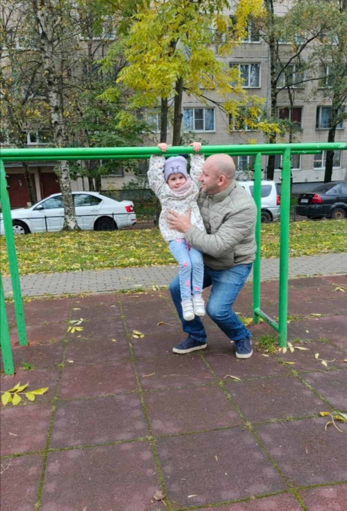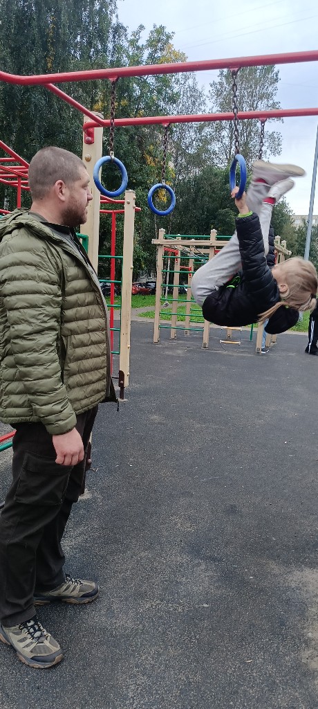 Обожаю своего папочку. Он большой и добрый , всегда вовлекает нас в любую работу и любит с нами проводить время. На даче работаем, ездим на природу, в парке гуляем. Гулять с ним это море эмоций и уверенности, что я в безопасности. Я люблю висеть на турнике. Мама считает, что это любовь у меня появилась сама по себе. Однако, как-то раз она гуляла вместе с нами и увидела, как папа сажает меня попой на турник, руками держусь и кувыркаюсь вниз при этом не падаю, а продолжаю висеть. Мама очень переживает, когда я выполняю такие трюки, но на фотографии все и так видно. Про другие рассказывать не буду. Тсссс это мой с папой секрет.