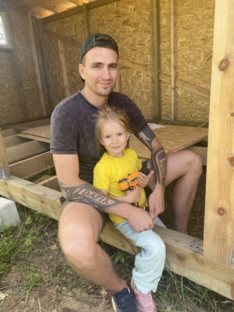 Наша семья стоит загородный дом. В этом процессе и Даша помогает папе, с ловкостью и интересом берет у папы инструмент, далее под папиным чутким руководством вкручивает шурупы. Очень увлекательный процесс!