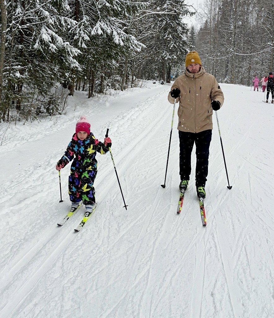 В зимние субботы я и моя дочь Ева надеваем лыжи и отправляемся по лесной тропе — наш небольшой семейный ритуал. Для меня это возможность провести время с дочерью и привить ей любовь к простым радостям: равномерному скольжению, размеренному ритму шагов и терпению. Для Евы — это исследование зимнего мира, приобретение уверенности на скользкой трассе и уважение к силам природы. На фото мы едем рядом: я слежу, поддерживаю и подаю пример, а Ева с каждым разом становится всё увереннее. Наше хобби — не только спорт, но и время, которое мы дарим друг другу, создавая тёплые воспоминания под падающим снегом.