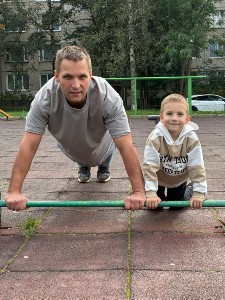 Моего папу зовут Иван. Это фото сделано на спорт площадке. Папа мне прививает спортивные навыки . Учит меня отжиматься , подтягиваться. Этим летом папа за два дня научил меня ездить на двух колесном велосипеде. Все свободное от работы время он проводит со мной. Несколько раз брал меня в баню, мне там очень понравилось, особенно ледяная купель. Он для меня самый лучший. Я его сильно люблю .