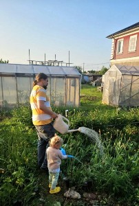 Тихий летний вечер на даче. Папа Кирилл с большой лейкой, а его любимая доча Стеша — со своей маленькой, в которую помещается целое море энтузиазма. Стеша не отходит от своего папы ни на шаг, старательно повторяя каждое его движение. Вдруг среди листьев они заметили маленькую улитку и дружно решили перенести её погреться на солнышке. Такие простые дела — полив цветов и забота о маленьком существе — делают их связь по-настоящему крепкой и особенной. Папа учит Стешу видеть красоту в малом, а она своим старанием согревает его сердце. И кажется, что от их совместной заботы распускаются не только бутоны, но и счастливые улыбки.