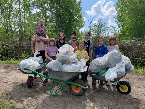 В самом начале лета, когда мы все собрались на даче, наш папа позвал нас на субботник. Мы с друзьями собирали мусор на линии, где стоят наши дома. Стало очень чисто и очень красиво. Потом папа угощал нас всех мороженым и другими вкусняшками! Было здорово и очень весело!