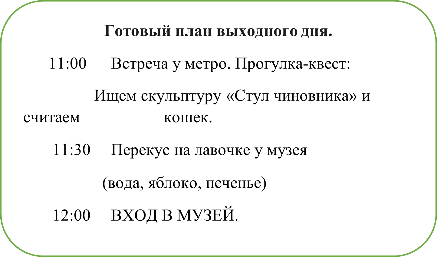 2. Чёткий план дня — от выхода из метро до возвращения домой.